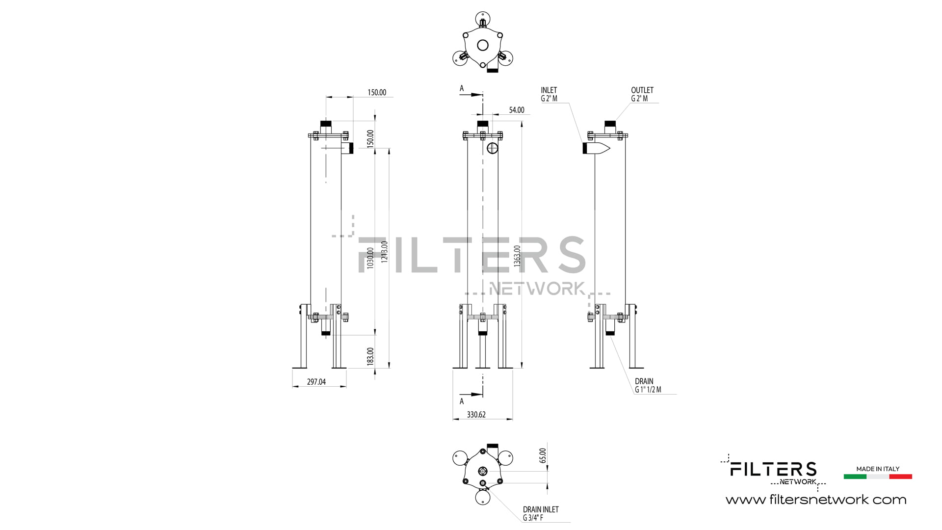 - Uscita dell’Acqua Filtrata: La connessione OUT, situata al centro della parte superiore del ciclone, attraverso la quale esce il filtrato.